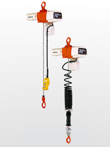 懸垂形の電気チェーンブロックです。押ボタン操作により昇降し作業の能率を大幅に向上します。昇降は1速形と2速インバータ形を選択いただけます。