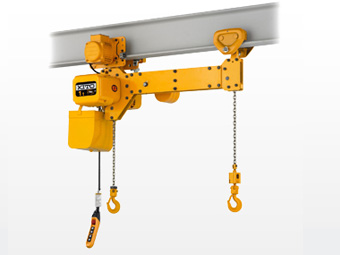 押ボタン操作により昇降するタイプです。横行動作はハンドチェーンの操作で横行させることができます。昇降は1速形と2速インバータ形を選択いただけます。